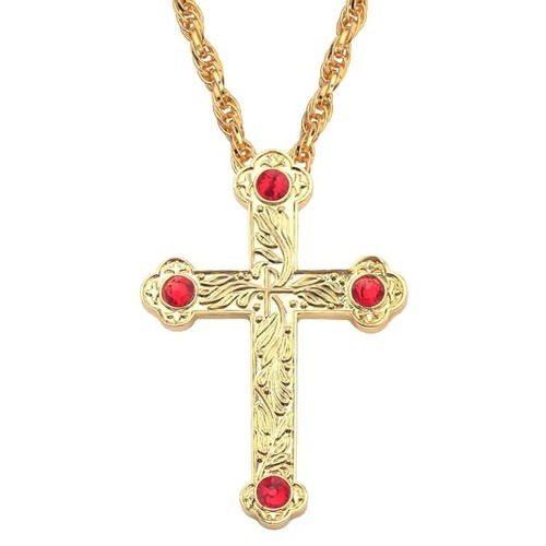18K Yellow Gold Over Ruby Religious Jesuscrucifix Cross Pendnat 47″Men Necklace