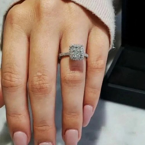 2Ct Cushion Lab-Created Moissanite Halo Engagement Ring 14K White Gold