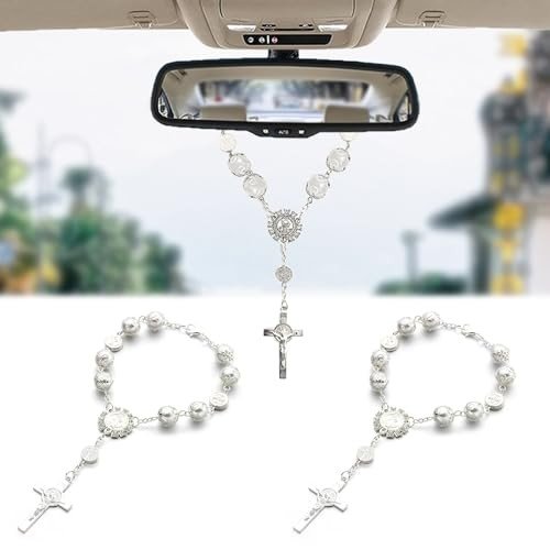 2PCS Car Mirror Decor, Rear View Mirror Accessories, Auto Religious White