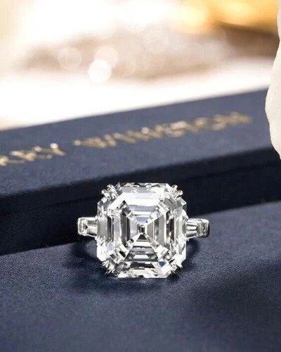 3 Ctw Asscher Cut Moissanite Three Stone Engagement Ring 14k White Gold