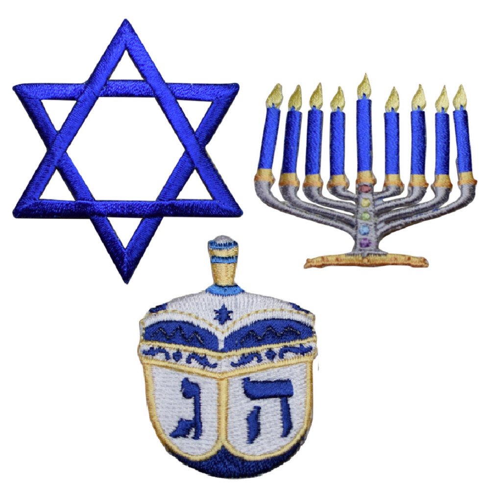 3-Pack Hanukkah Applique Patch Set – Hanukkah Menorah Star Of David Embroidered