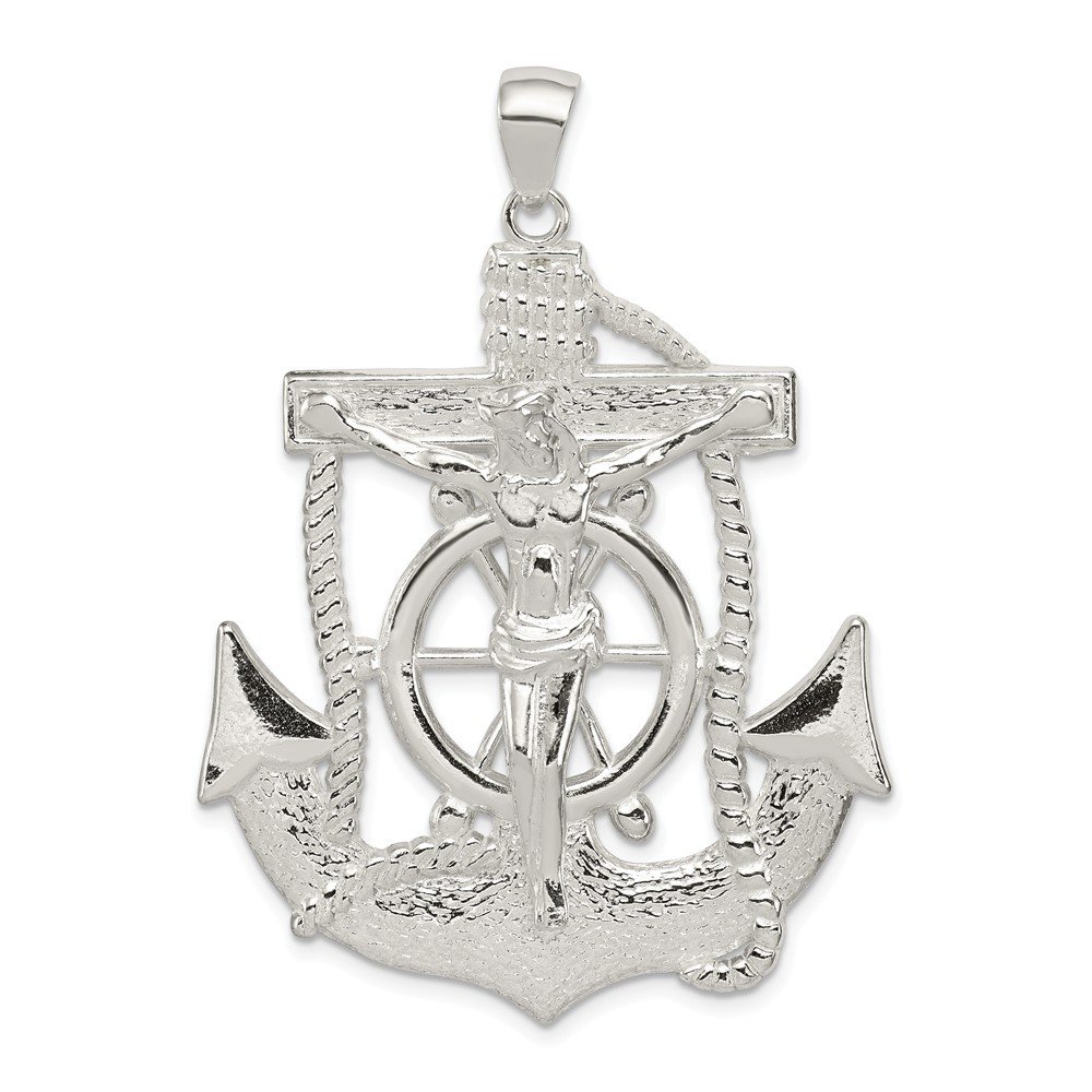 .925 Sterling Silver Flat Back & Textured Mariner Cross Anchor Pendant