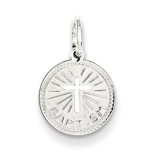 .925 Sterling Silver Laser Etched Solid Baptism Cross Children’s Disc Charm