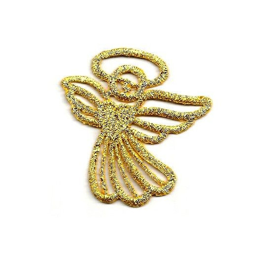 Angel – Christmas – Embroidered Gold Metallic Iron On Applique Patch – LG – L