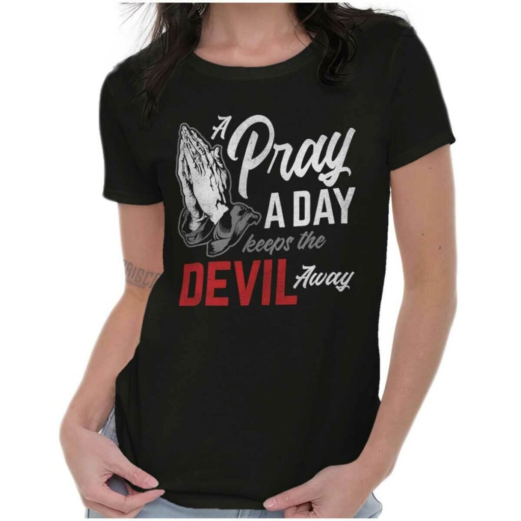 Christian Prayer A Day Keeps the Devil Away Womens Top Junior Graphic Tee