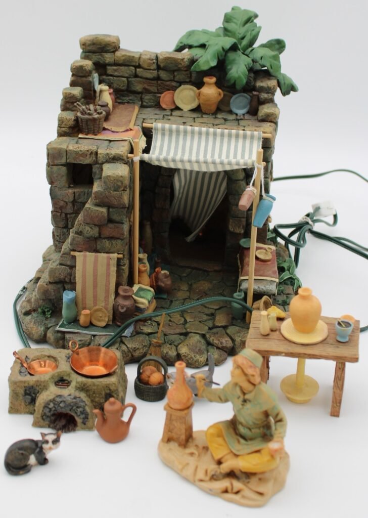 Fontanini Lighted Nativity Village “Pottery Shop ” and Accessories for 5″ Scale