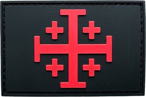 JERUSALEM CROSS INFIDEL CRUSADER TEMPLAR BLACK RED PVC RUBBER HOOK PATCH