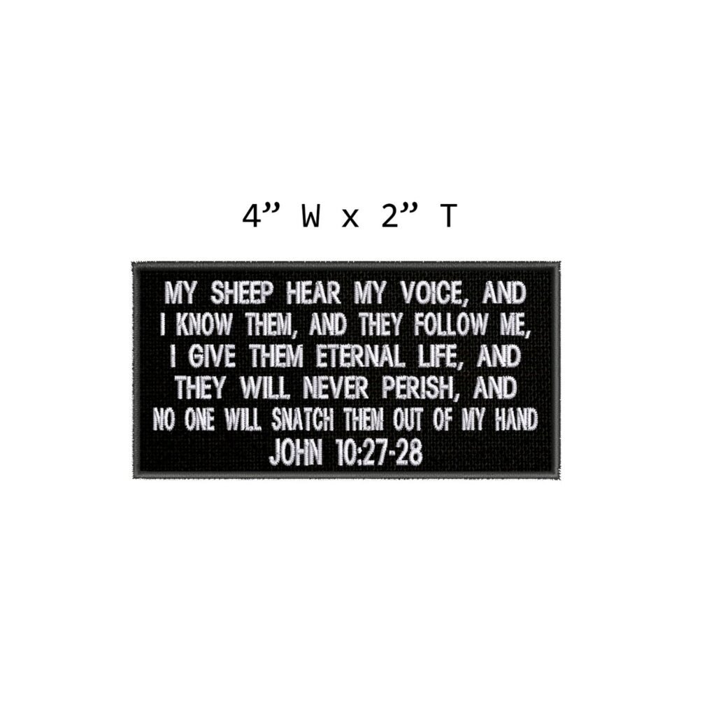 John 10:27-28 Bible Verse Patch Embroidered Iron-on Applique Christian Bikers