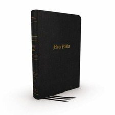 KJV Thinline Bible, Large Print, Genuine Leather, Black, Red Letter, Thumb Index