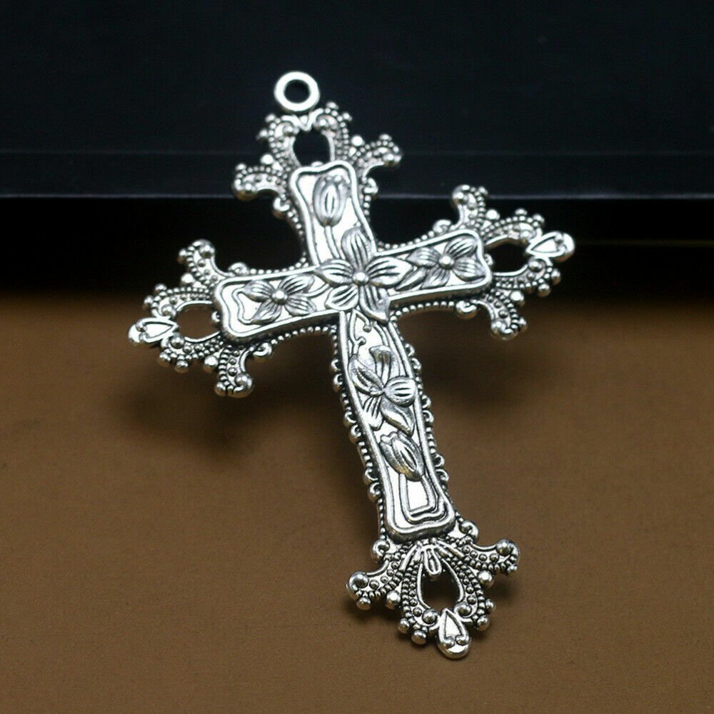 large CROSS ITALY HOLY CRUCIFIX pendant 24″ Sterling silver 925 necklace chain