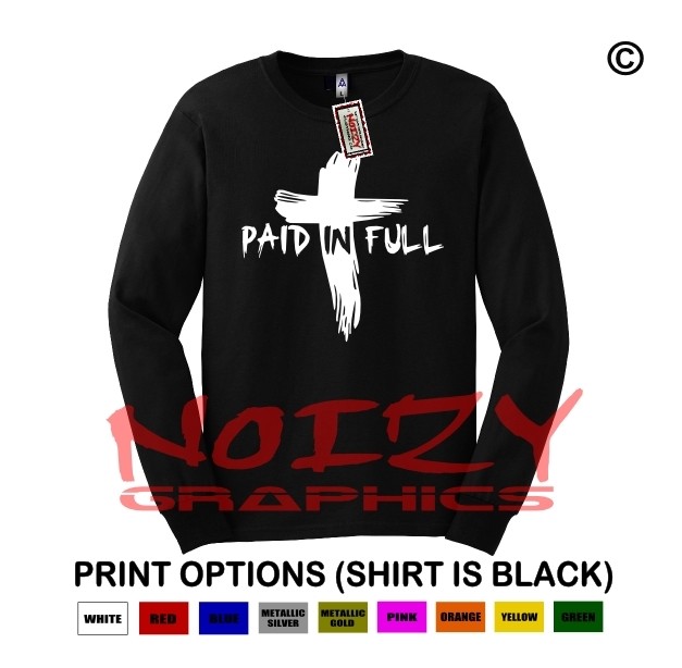 Paid In Full Cross Blood Christian LONG SLEEVE Shirt Religious Jesus Forgiven
