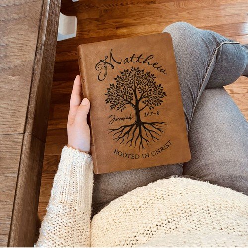 Personalized NASB Giant Print Bible, Rooted in Christ Tree Design, Name Engraved