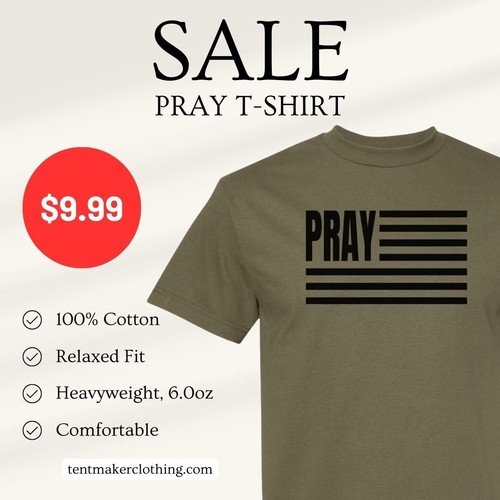 Pray US Flag T-Shirt, 100% Cotton, Military Green, Small