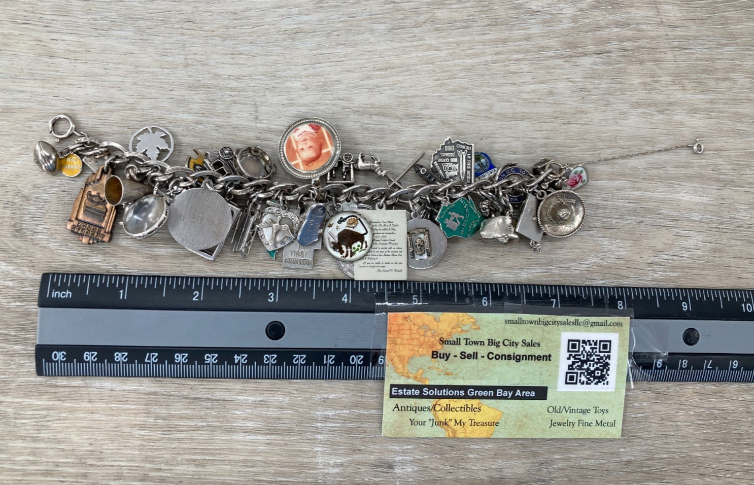 Vintage Sterling Silver Charm Estate Bracelet 44 Souvenir Religious Disney Heavy